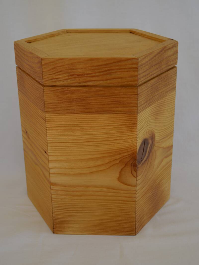 513 Urne aus Pinie einer Kirchenbank mit Buche